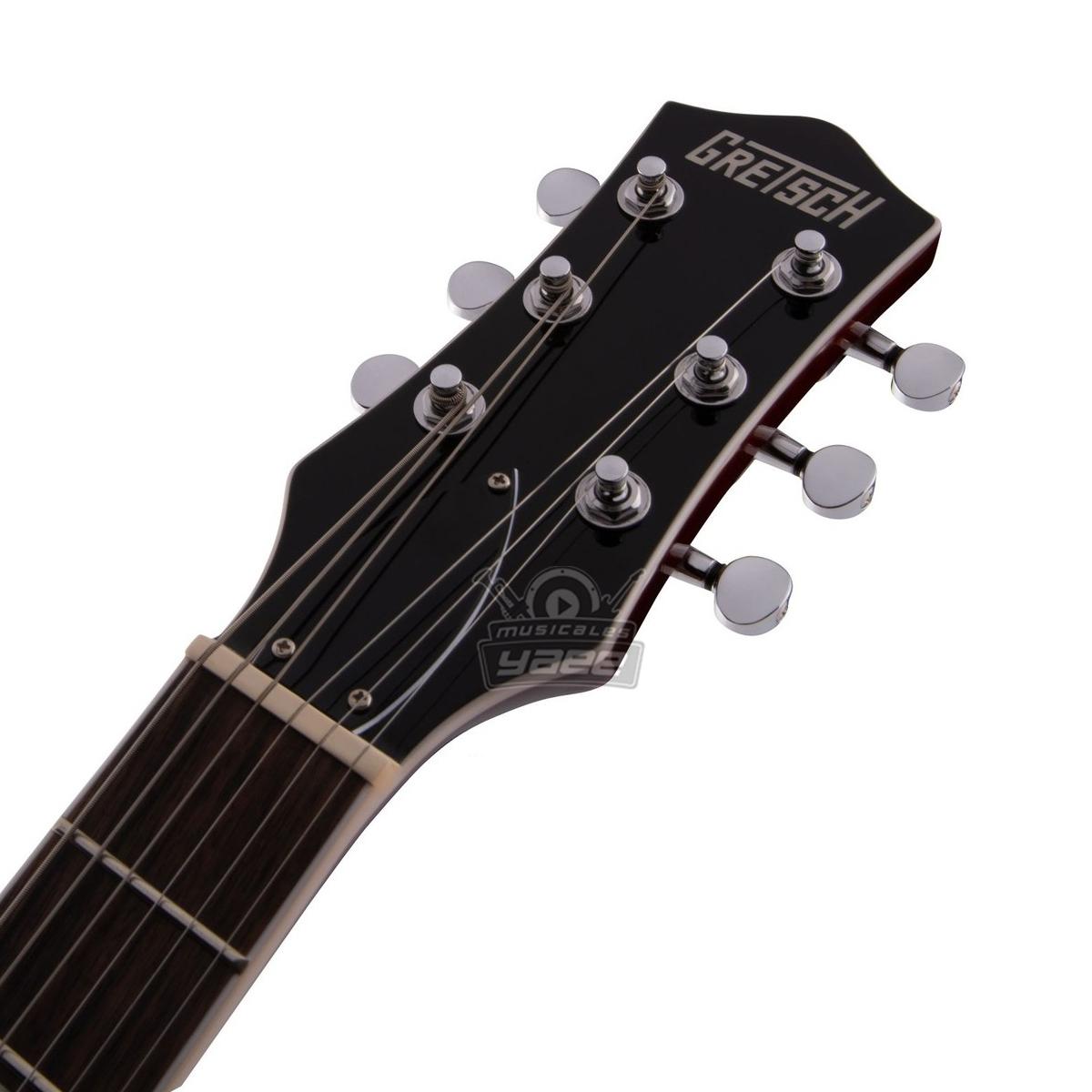 Y también puedes incorporar una amplia gama de estilos a tu música. Las pastillas de alto rendimiento Black Top Broad'Tron te dan un control total sobre tu tono. Ofrecen todo con claridad, y los controles de volumen individuales para cada pastilla, junto con un control de tono maestro, te permiten dar forma al sonido exacto que quieres para tu guitarra. Este modelo asequible es perfecto para aportar potencia y alcance a tu música. Junto con todo el estilo icónico Gretsch que te permite destacar en el escenario.