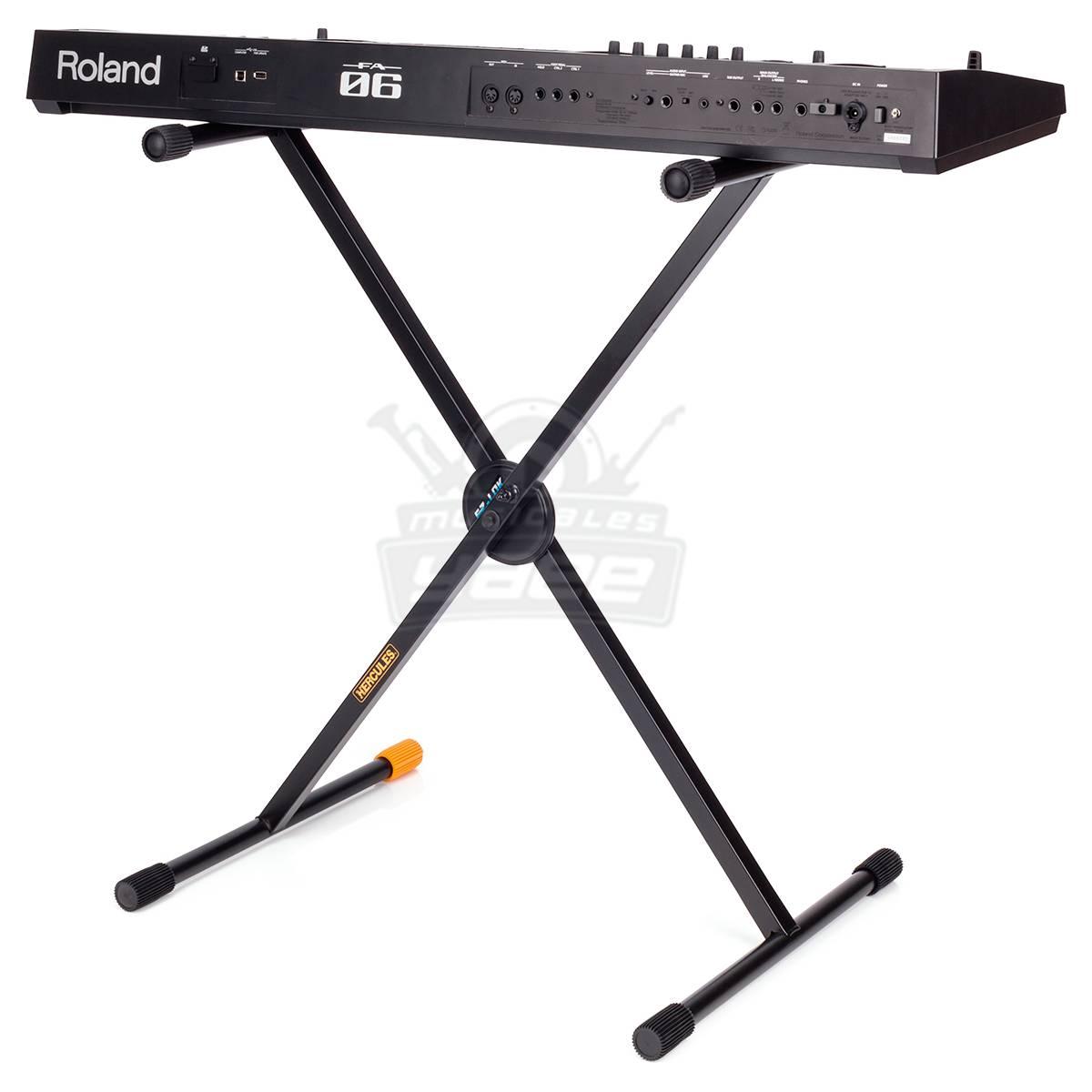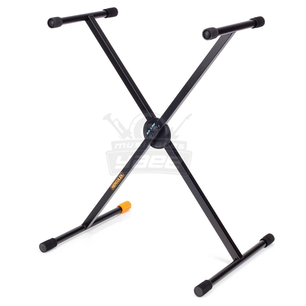 El soporte para teclado HERCULES Single X KS110B presenta el EZ-LOK patentado, 5 configuraciones de altura y una construcción de acero resistente.