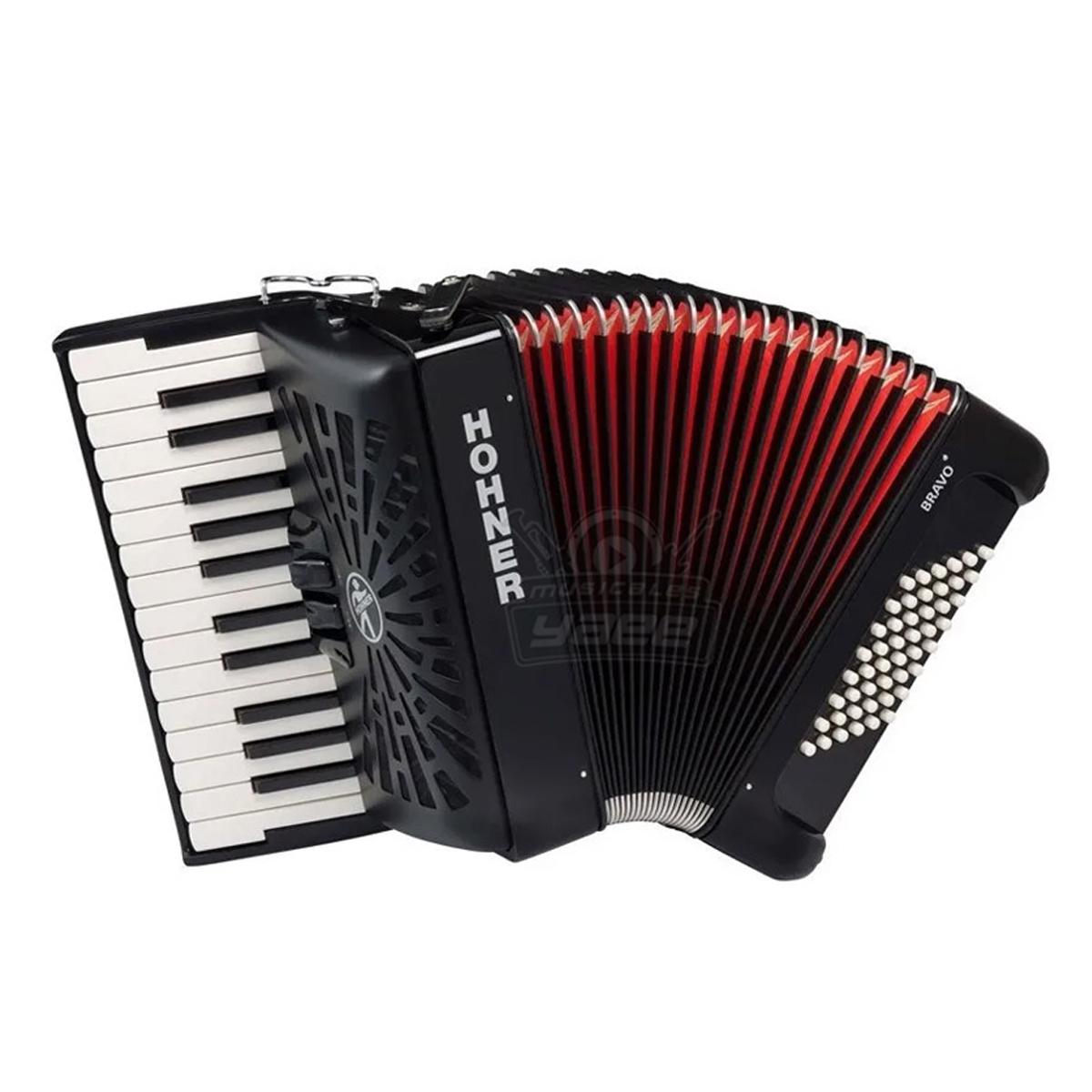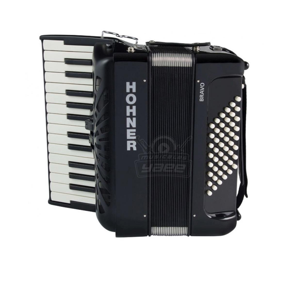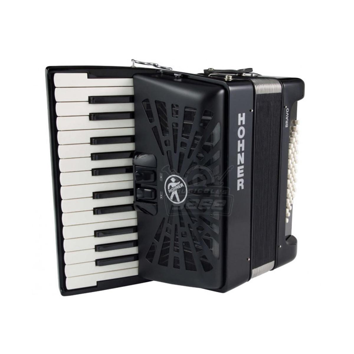 ACORDEON BRAVO II HOHNER, CUENTA CON 26 TECLAS Y 48 BAJOS, COLOR NEGRO, CON FUNDA MOD. A16522