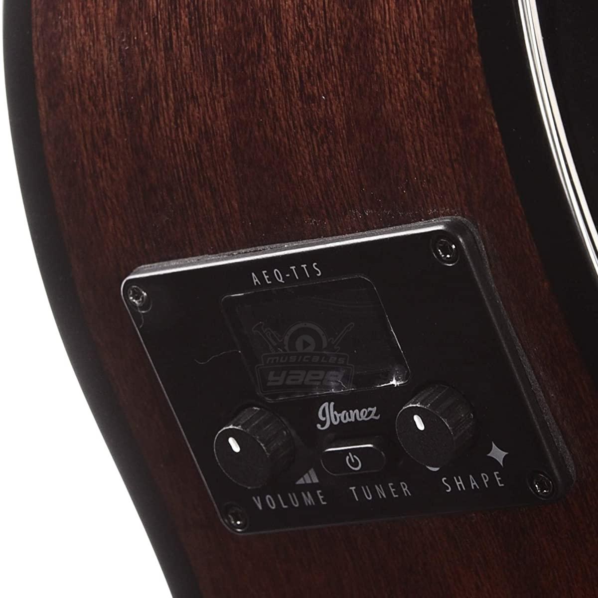 La AEG es una guitarra acústica y eléctrica de cuerpo compacto con un cuello delgado que ha sido bien aceptada por su facilidad de tocar durante más de dos décadas. Ibanez se enorgullece de anunciar que la serie AEG ha sido renovada con electrónica y aspecto actualizados. Los cambios se basaron en el concepto de control simple y fácil. El AEG70 comienza con un preamplificador diferente: un Ibanez AEQ-TTS. Este pequeño y simple preamplificador tiene solo dos botones de control: volumen y forma. Este control de tono de un vistazo ofrece un sonido acústico natural en la posición central. Permite a los jugadores ajustar el tono fácilmente y les permite pasar de tonos bajos, grasos y potentes a un sonido brillante y crujiente mientras ajusta solo una perilla. Un sintonizador integrado fácil de leer con pantalla LCD (pantalla de cristal líquido) se encuentra en el preamplificador. El AEG70 viene con una roseta simplificada, encuadernación y ornamentación en el cabezal