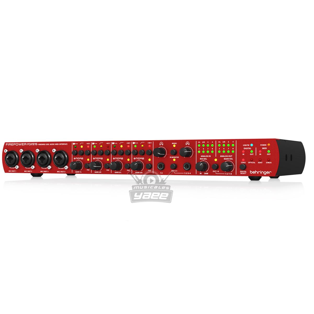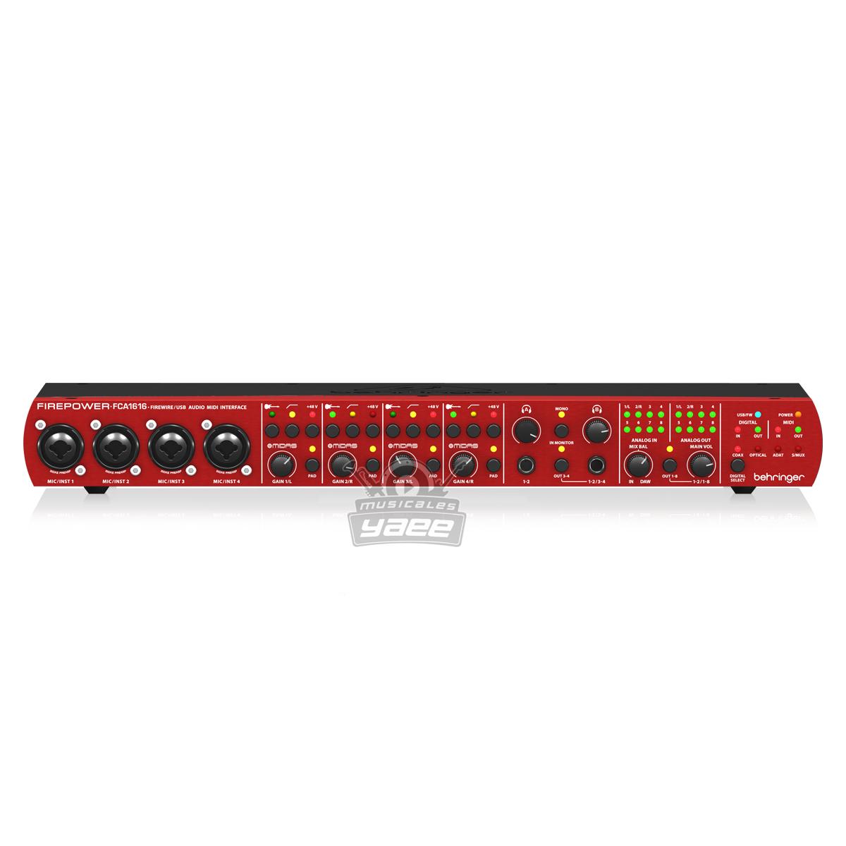 El FIREPOWER FCA1616 de calidad boutique es la forma ideal de transmitir audio desde y hacia su PC o computadora Mac. Los cuatro preamplificadores de micrófono diseñados por MIDAS con alimentación fantasma de FCA1616, legendarios en todo el mundo por su claridad impecable y su alto rendimiento, además de nuestros convertidores A / DD / A de 24 bits / 96 kHz, que realmente respetan su entrada.