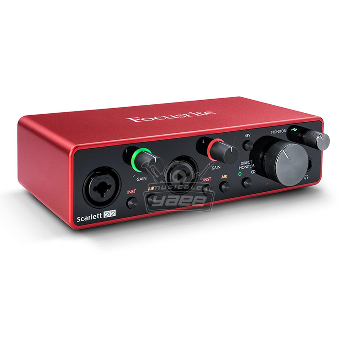 | Software: | Ableton Live Lite, Focusrite Red Plug-in Suite, Pro Tools First Creative Pack (PT First no es compatible con complementos de terceros) | |
