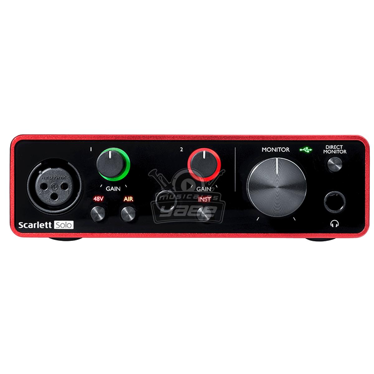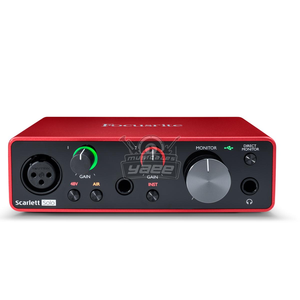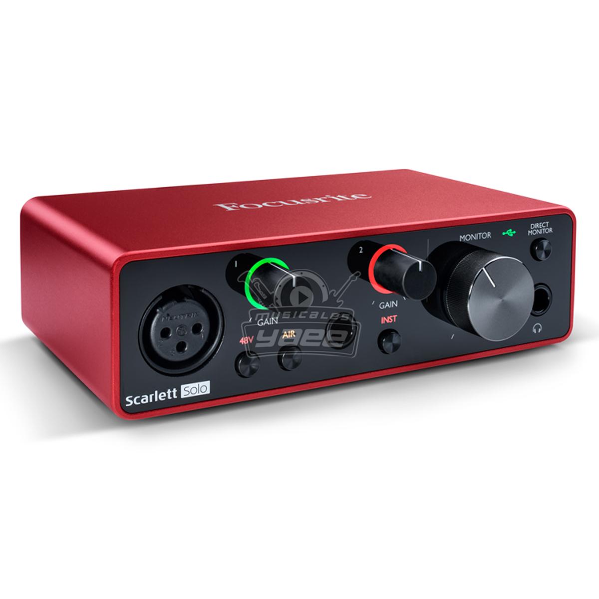 Es tan fácil hacer música con la interfaz de audio USB Scarlett Solo de Focusrite! Ideal para el cantautor, el Scarlett Solo luce el legendario preamplificador Focusrite, así como una DI cristalina para tu guitarra, bajo o teclas. Los halos de ganancia únicos de Focusrite facilitan el control de sus niveles, mientras que la toma de auriculares, el interruptor de monitor directo y el dial de gran volumen hacen que el monitoreo sea muy fácil. Para este Scarlett Solo de tercera generación, Focusrite no solo ha elevado el listón con una latencia extremadamente baja, frecuencias de muestreo de 192 kHz, estructura de ganancia de preamplificador optimizada y una entrada de instrumento que maneja pastillas abrasadoras calientes; también incluyeron el aclamado circuito Air que modela su legendario transformador de consola ISA para darle a sus grabaciones de voz e instrumentos un sonido más brillante y abierto. Scarlett Solo G3 ofrece el sonido de calidad profesional que necesita, a un precio que le encantará. Conéctese, inicie el software incluido y estará listo para rockear.