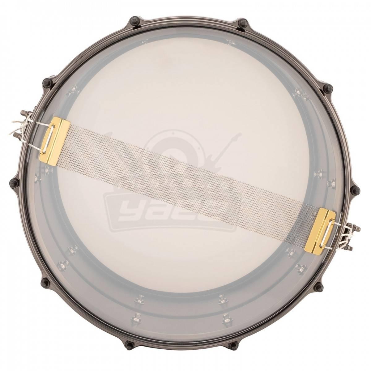 El Ludwig Universal 14'' x 8'' Brass Snare Drum sigue el modelo de la famosa gama Black Beauty de Ludwig, enfatizando la respuesta óptima, la sensibilidad y los tonos oscuros y cálidos. El tambor Universal Brass Snare cuenta con una carcasa de latón de 1 mm para ofrecer un rico rango dinámico, adecuado para varios rangos de afinación y combinaciones de parches. Este caparazón está equipado con aros fundidos a presión. Estos aros ofrecen un ataque más nítido y corte en estilos de juego más agresivos con un sonido alto, nítido y claro de rimshot y cross-stick.