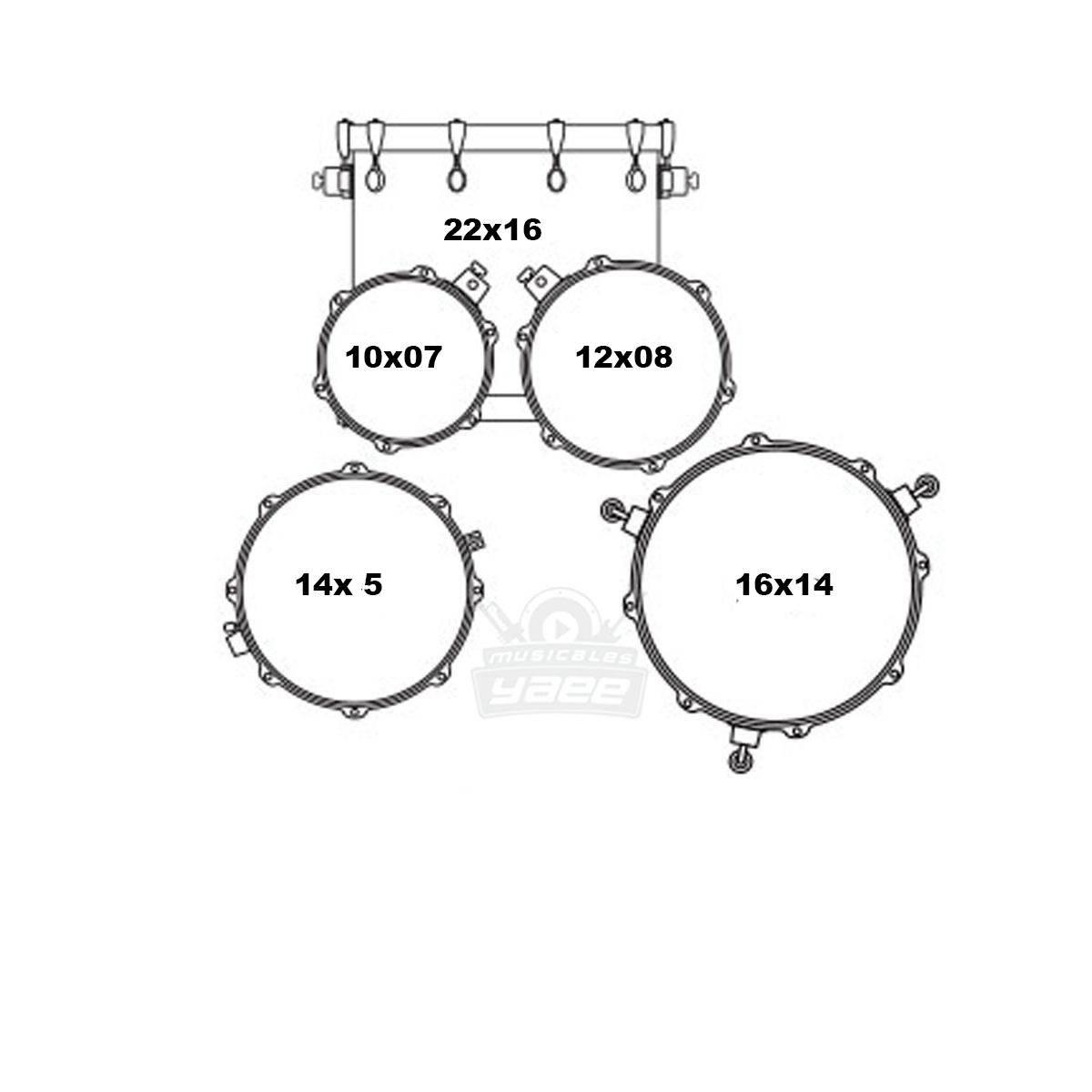| Toms montados ( profundidad x diametro) | 7" x 10",8" x 12" |