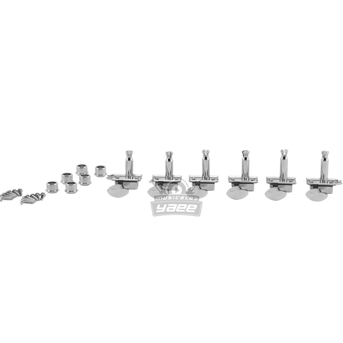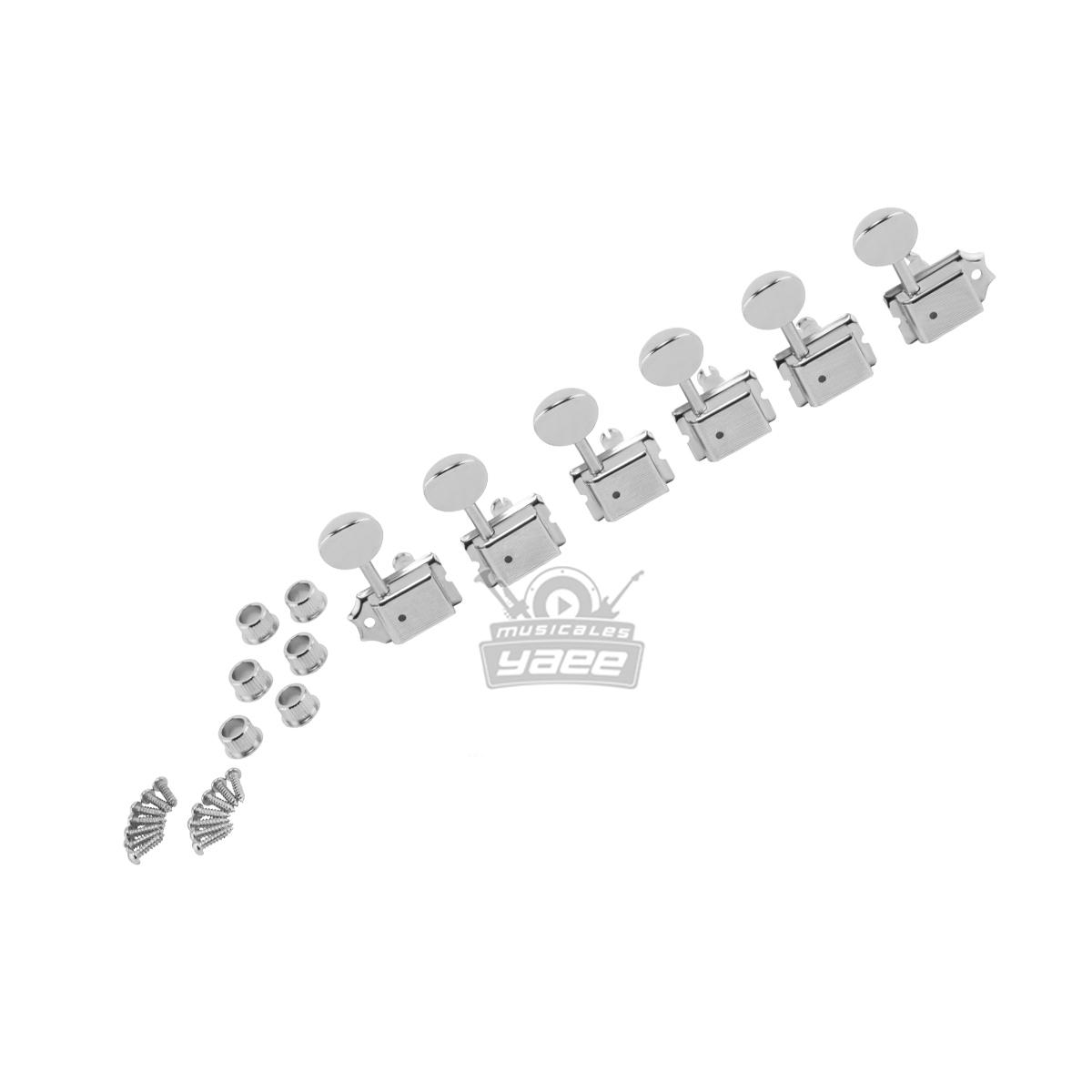 Elimina la necesidad de guías de cuerda con estos afinadores vintage escalonados. Los afinadores escalonados aumentan el ángulo de ruptura sobre la tuerca y mejoran la estabilidad de afinación. Ya sea que esté personalizando, modificando o restaurando, no hay mejor manera de mantener la orgullosa herencia y la precisión del período de su clásico instrumento o amplificador Fender que con piezas genuinas de Fender.