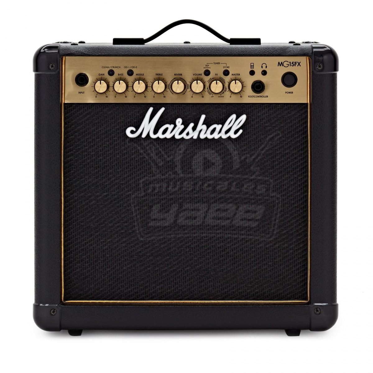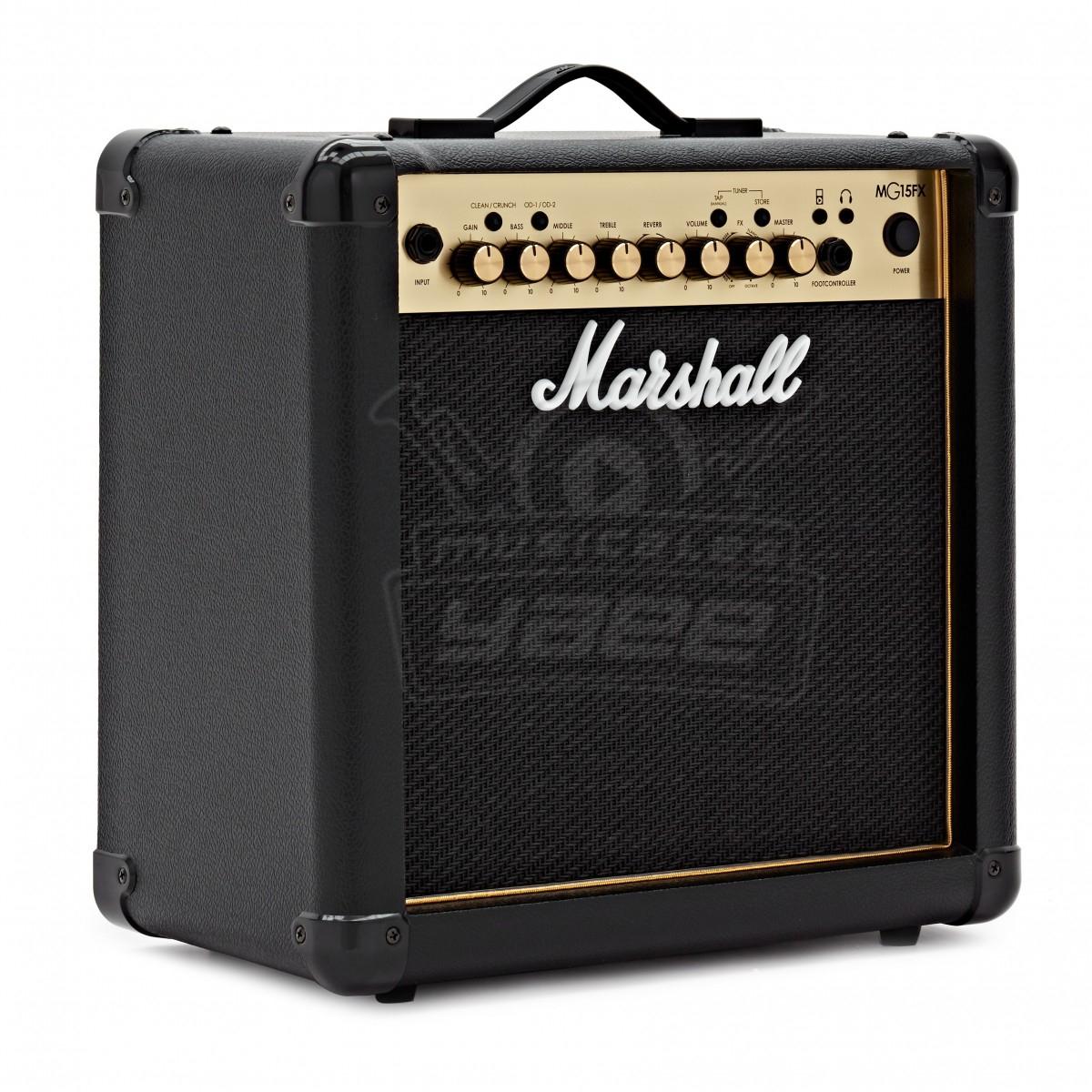 El Marshall MG15GFX Gold 15W Guitarra Combo presenta el diseño icónico del panel frontal ' 'gold y ofrece 15 vatios de tono Marshall portátil con efectos de sonido añadidos y reverb es el amplificador de práctica ideal con su altavoz personalizado de 8" y proporciones compactas. El amplificador incluye 4 canales para que puedas cambiar entre sonidos limpios y crujientes, con el canal de overdrive disponible en los modos'verde' y'rojo'. El dial FX le permite seleccionar entre 5 efectos digitales diferentes, mientras que el dial separado reverb crea un ambiente espacioso sobre su tono. El amplificador es lo suficientemente versátil como para permitirle reproducir todos los estilos de música, desde el pop limpio hasta el rock y el metal fuertemente distorsionados. Una toma para auriculares te permite practicar en silencio, mientras que la entrada AUX-in te permite tocar tus canciones favoritas. Marshall tiene una gran reputación en la fabricación de amplificadores y en la historia del rock'n' roll. El MG15GFX ofrece una pequeña parte de esa herencia en un pequeño combo; perfecto para el guitarrista progresivo o el músico que necesita un amplificador de práctica portátil que sea lo suficientemente potente como para tocar con sus amigos.