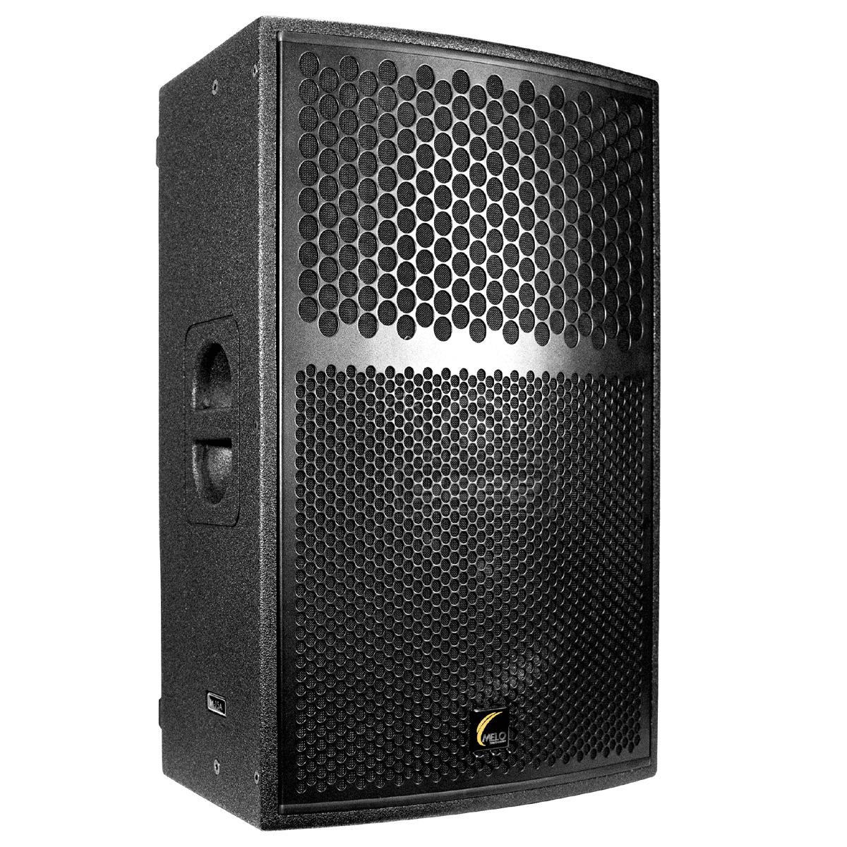 El M15-A es un bafle activo, con un componente de 15” de ferrita con bobina de 3.5”, un driver de 3” con diafragma de titanio e imán de ferrita. Potencia comprobada y medible. Fabricado en triplay de 15mm y terminado en poliurea negra que mejora el sonido y alarga su vida útil, en la parte frontal se encuentra una malla de acero reforzada, en el costado y en la parte baja añadimos gomas para colocarlo en forma horizontal o vertical en el caso de uso como monitor, 4 puntos de colgado, pole mount y manijas laterales así como una trasera para fácil manipulación.