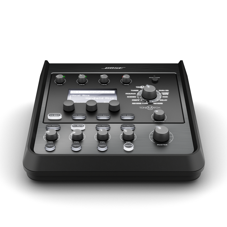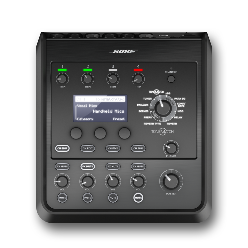 Tome el control de su música con el mezclador ToneMatch T4S: una interfaz ultracompacta de 4 canales pensada para los intérpretes. El T4S, diseñado con un potente motor DSP y controles de usuario intuitivos, dispone de efectos, dinámica y ecualizador con calidad de estudio. Obtenga un gran sonido con el procesamiento y el zEQ integrados de Bose ToneMatch, especialmente cuando lo conecte a un sistema Bose L1 o F1 para disfrutar un control tonal integral y completo. Toque con confianza en el escenario con el robusto T4S mediante sus controles táctiles, su pantalla LED fácil de leer y su memoria de escenas. El T4S es el verdadero acompañante de los músicos.