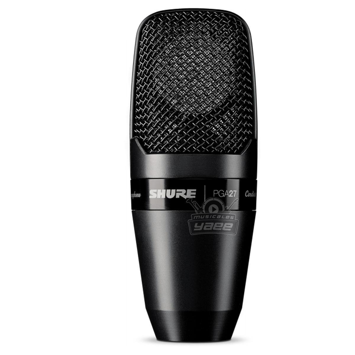 Microfono Shure PGA27 LC. El PGA27 está diseñado para capturar con claridad las fuentes de sonido vocales, acústicas y amplificadas en aplicaciones de grabación y sonido en vivo. Es un micrófono de captación lateral para utilizar en grabaciones de voces e instrumentos amplificados y acústicos. Con cápsula de condensador (requiere alimentación Phantom) con patrón polar cardioide. Diafragma grande con un rango dinámico más amplio para sonidos agudos claros y graves fuertes. Incluye micrófono PGA27, suspensión, estuche protector con cierre y manual de usuario.