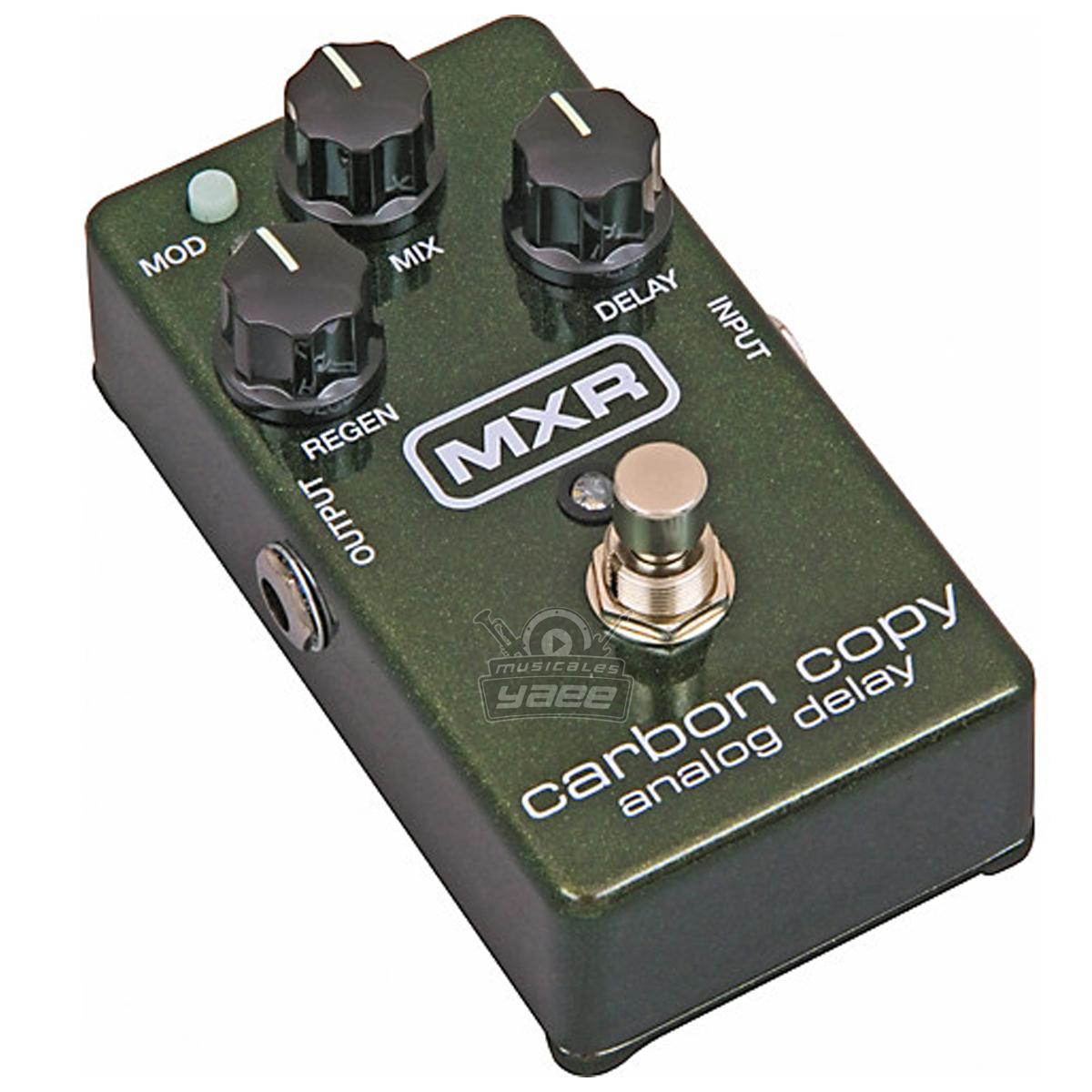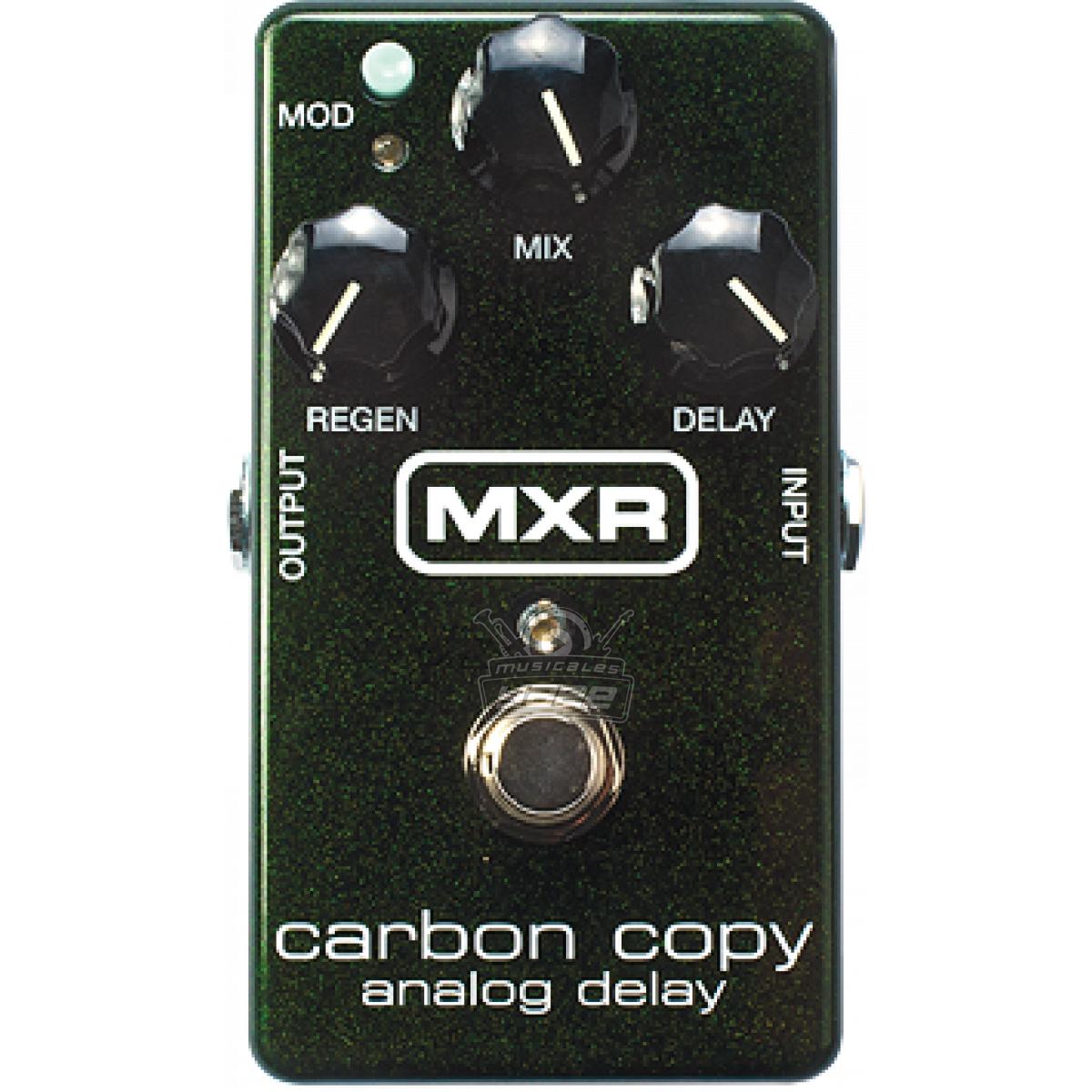 El retardo analógico MXR Carbon Copy presenta una ruta de audio completamente analógica, que ofrece un retardo rico y cálido utilizando la tecnología de brigada de cubos de la vieja escuela. Carbon Copy cuenta con 600 ms de tiempo de retardo, con modulación opcional a través de un interruptor montado en la parte superior, y su diseño simple de tres perillas le brinda un control completo sobre Delay, Mix (mezcla seca / húmeda) y Regeneración (repeticiones de retardo), todo en ¡un pedal increíblemente compacto! Para opciones aún más tonales, también puede ajustar el ancho y el control de velocidad de la modulación a través de dos potenciómetros internos. Este pedal te ofrece de todo, desde nítidos ecos de bofetadas en el baño hasta retrasos épicos, todo con el simple giro de una perilla. ¡Los LED azules dignos de un escenario y la operación de 9 voltios completan este retardo analógico MXR Carbon Copy!