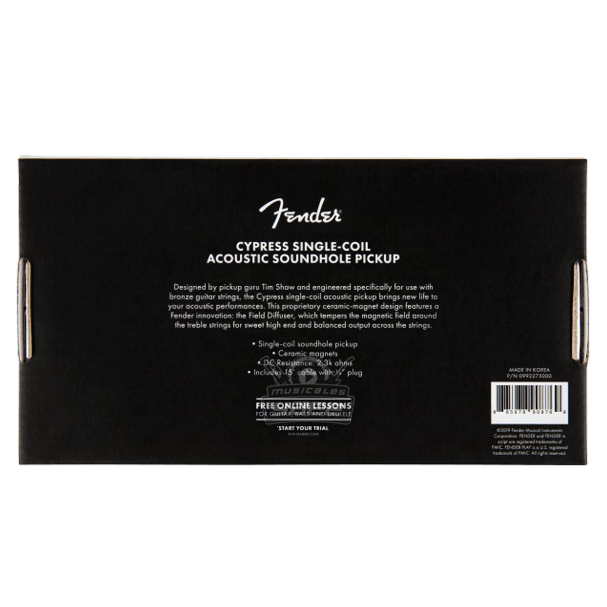 Diseñada por el gurú de las pastillas Tim Shaw y diseñada específicamente para su uso con cuerdas de guitarra de bronce, la pastilla acústica Cypress de bobina simple da nueva vida a sus interpretaciones acústicas. Este diseño patentado de imán de cerámica presenta una innovación de Fender: el difusor de campo, que templa el campo magnético alrededor de las cuerdas de agudos para lograr una salida dulce y equilibrada a través de las cuerdas. Incluye un cable de 15 'con enchufe de ¼ ”.