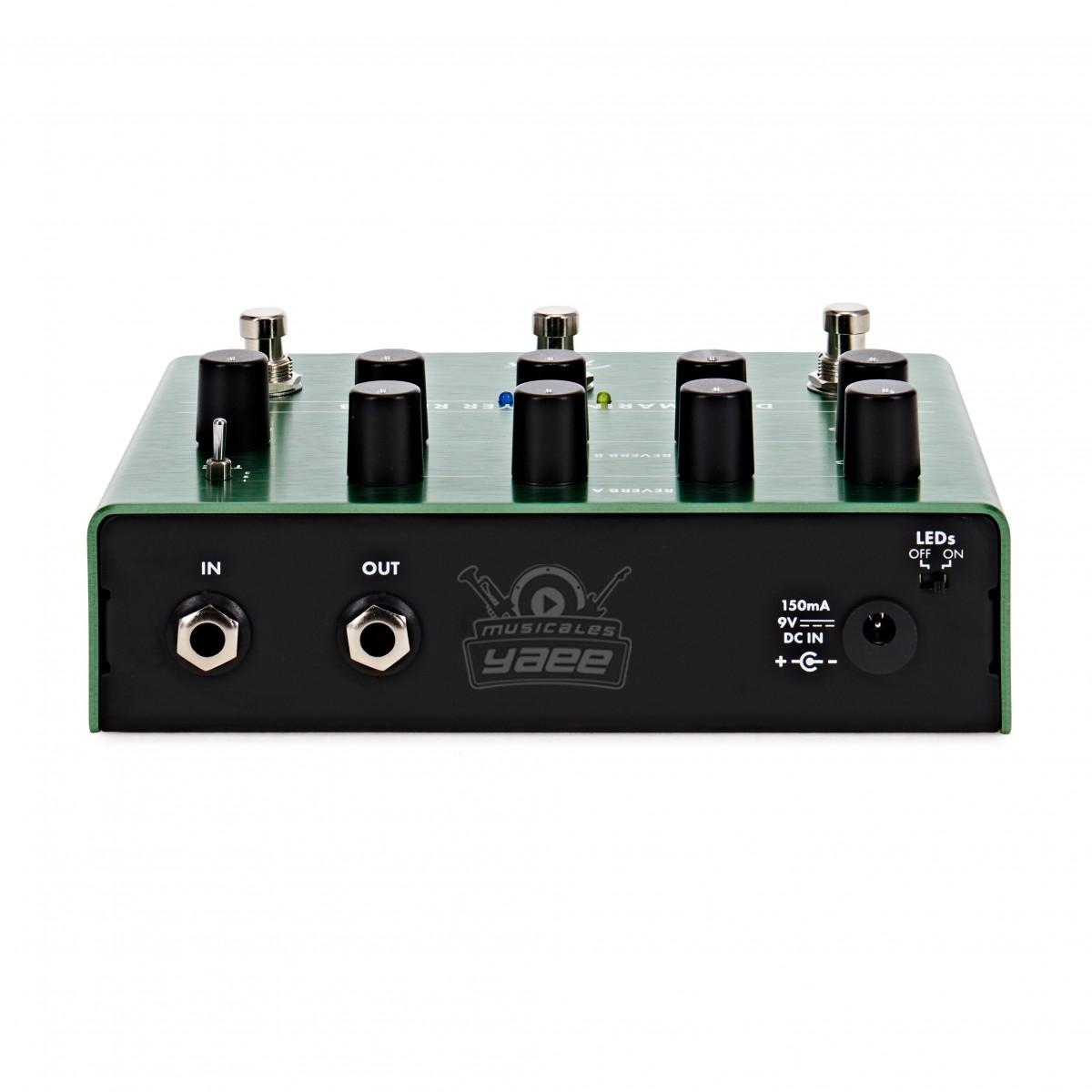 | Controles: | Amortiguación x2, Tiempo x2, Pre-Demora x2, Nivel, x2, Sostenimiento, Reverb Tipo (1-3) Los interruptores de pie Bypass, Reverb, Sustain |