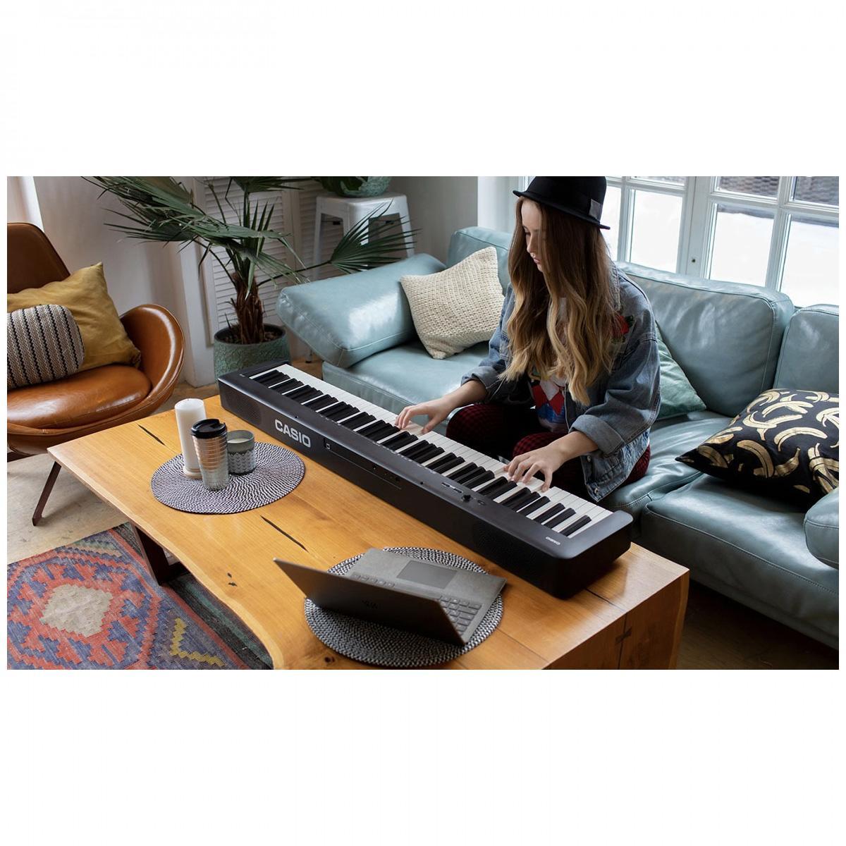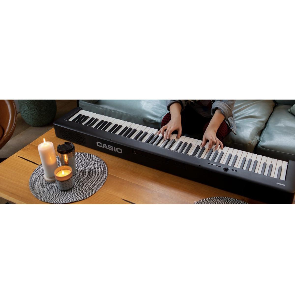 Lleve su piano digital Casio CDP S100 donde quiera que vaya. Cuidadosamente fabricado con un diseño delgado y compacto. El CDP S100 es ligero y fácil de transportar. Meticulosamente diseñado para producir las capacidades de sonido más auténticas. El piano digital Casio CDP S100 está hecho con una increíble acción de martillo, capturando incluso los más mínimos matices. Con teclas texturizadas, que le proporcionan un agarre más firme de las mismas. El CDP S100 le ofrece un rendimiento superior.