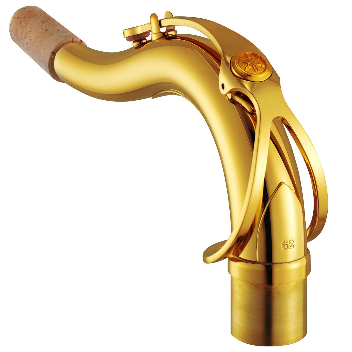 La gama Yamaha 62 es una gama profesional, acogida por la serie 6000 de Yamaha, en la que todos los instrumentos son de características profesionales. Esta gama 62 está disponible en saxofones altos, saxofones tenores y saxofones barítonos. La primera mejora con respecto a la gama 280 / 480 es que están construidos en Japón. Las mejoras de este modelo comienzan por el tudel, denominado tudel Estilo 62. Los pilares del saxofon están integrados en el cuerpo unidos todos a la misma placa. La campana, incorpora un gravado hecho a mano, también utilizan muelles de acero de gran calidad para todos los mecanísmos de las llaves. Otro detalle en el tudel es el sistema de agarre del tudel al cuerpo, incorpora una barra que enriquece los armónicos. Como última novedad, podemos destacar un tornillo de ajuste entre las llaves Si-Do# grave. Es muy importante tener en cuento que Yamaha fabríca sus saxofones con un sistema de ajuste de tornillos y corchos, por ejemplo, toda el sistema de la mano derecha viene individualizado, es decir, cada llave tiene un tornillo que aprieta un corcho. ¿Qué mejoras nos da este sistema con respecto a los que traen corchos solamente? pues la respesta es bien sencilla, si en nuestro instrumento notamos cierto desajuste debido a nuestra forma de tocar o al desgaste ocasionado con el paso del tiempo, podemos corregir la apertura de estas llaves con solo mover 1/4 de vuelta de alguno de estos tornillos (siempre debe de realizar este proceso la persona adecuada) en lugar de tener que cambiar un corcho.