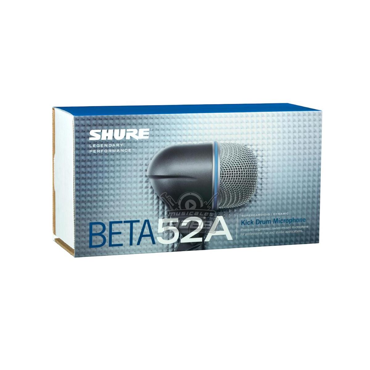 El BETA52A es un micrófono dinámico con salida de alta ganancia y una respuesta en frecuencia adaptada diseñada específicamente para bombos y otros instrumentos muy graves. Ofrece un ataque y “golpe” formidables, y un sonido con calidad de estudio aún con niveles de presión sonora extremadamente altos.El BETA52A tiene un patrón supercardioide modificado en todo su rango de frecuencia para garantizar una alta ganancia antes de retroalimentación y un excelente rechazo del sonido no deseado.