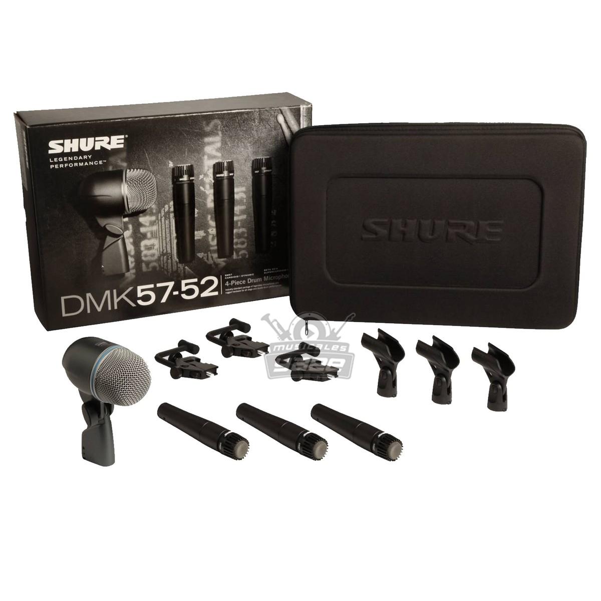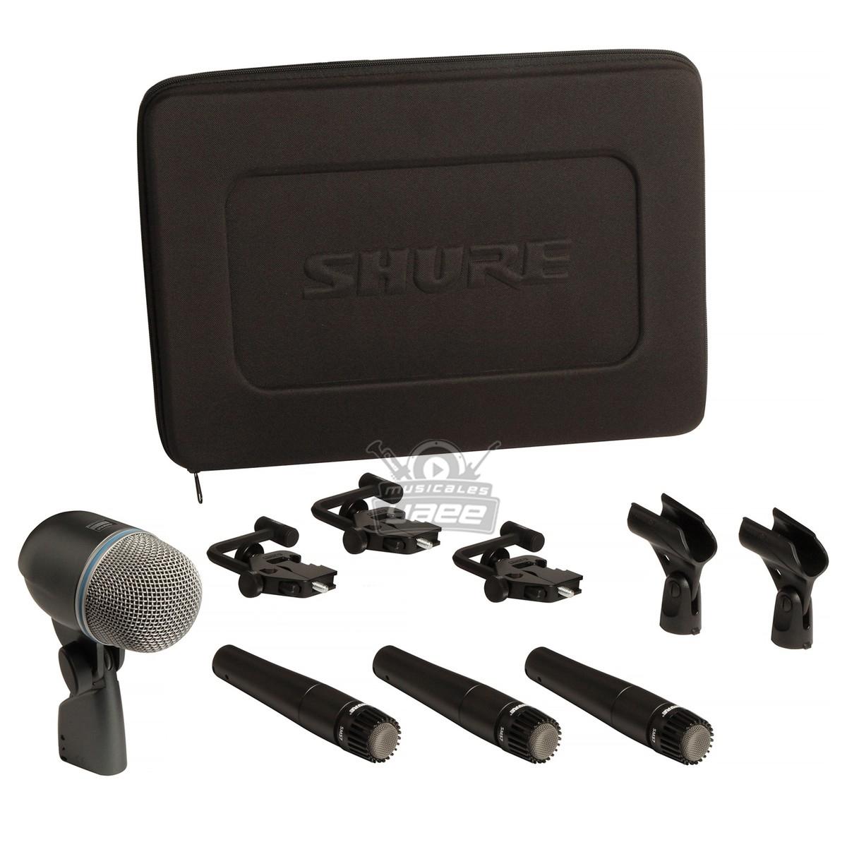 - Juego de micrófonos para batería, incluye 3 micrófonos SM57, un micrófono Beta 52A, tres monturas de batería A56D y un estuche.