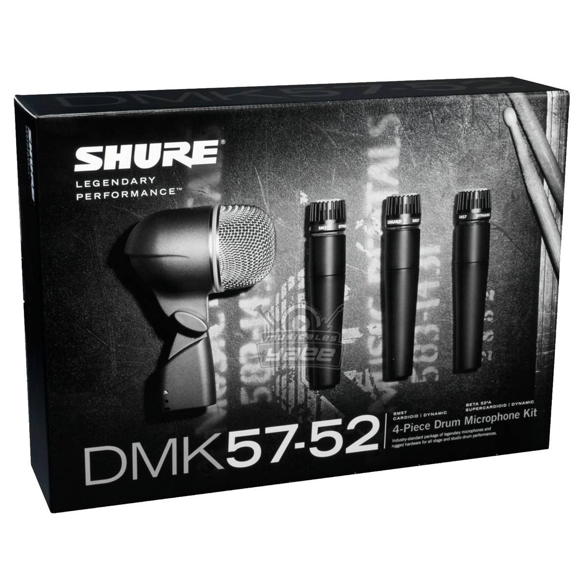 El juego de micrófonos para batería DMK57-52 es una selección de micrófonos y monturas convenientemente seleccionadas, diseñado para ofrecer un juego completo de micrófonos para grabaciones y presentaciones de bateristas a un precio reducido. El juego de micrófonos para batería incluye tres micrófonos SM57, un micrófono Beta 52A, tres monturas para baterías A56D, y un estuche liviano.