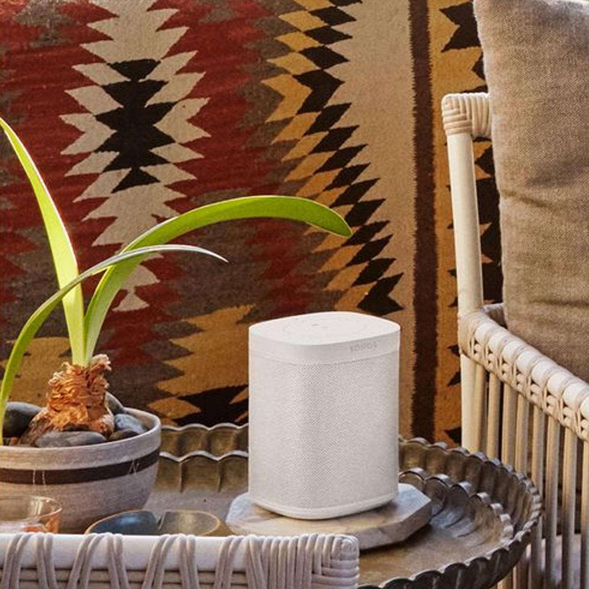 La poderosa bocina inteligente con control por voz integrada. Obtenga un sonido intenso y envolvente con Sonos One, y controle su voz, la aplicación Sonos, Apple AirPlay 2 y más. El diseño compacto se adapta con precisión a cualquier espacio. Ponla en la encimera de tu cocina o en el librero de tu oficina. Es resistente a la humedad, por lo que incluso puedes ponerla en el baño. El Asistente de Google y Amazon Alexa ya vienen integrados para que puedas poner música, consultar noticias, establecer alarmas, recibir respuestas a tus preguntas y mucho más, todo sin usar las manos.