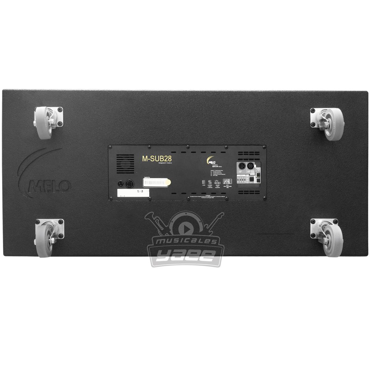 El M-SUB28-A es un subwoofer que ha sido concebido desde el comienzo para satisfacer el mercado que necesita más potencia en sus eventos y es un excelente complemento de nuestros sistemas KENDO y KODA. Sus dos componentes de 18” están montados en cámaras independientes, con puertos de sintonía diseñados para el libre flujo de aire y una muy baja distorsión a grandes presiones. Añadimos un módulo RAM Audio de 3000W RMS clase D dedicado, el cual brinda una gran calidad de sonido y añaden un peso mínimo a la caja. Integra un procesador de clase mundial de la misma marca el cual trabaja a 64Bits @ 96Khz con el cual procesamos y limitamos con compresores RMS y Limitadores PICO el trabajo del subwoofer para garantizar el mejor sonido en todo momento.