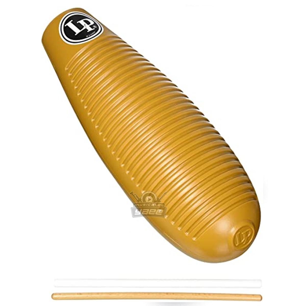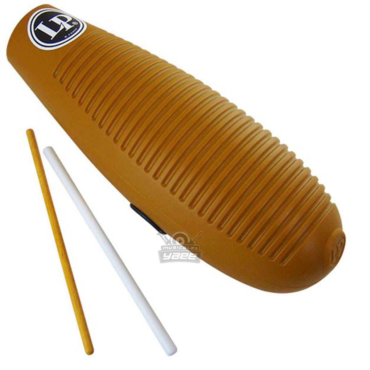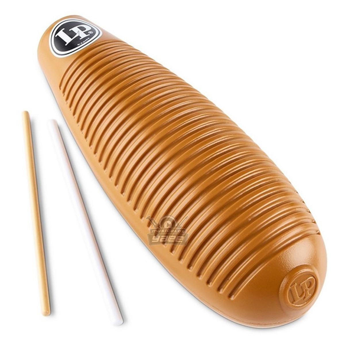 Incluye dos raspadores: un modelo de plástico para sonidos brillantes y fuertes y una versión de madera para sonidos cálidos y secos