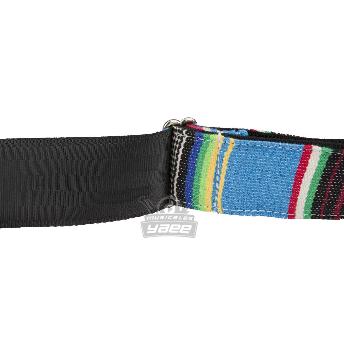 nspirada en los diseños atrevidos y las telas inconfundibles de las mantas mexicanas, la correa Serape es una forma elegante y funcional de mantener seguro su instrumento. Esta correa única está confeccionada con una auténtica manta mexicana reforzada por el respaldo del cinturón de seguridad de poliéster con un deslizador de níquel plateado. Ofrecida en tres diseños multicolores, esta correa es tan llamativa como cómoda.