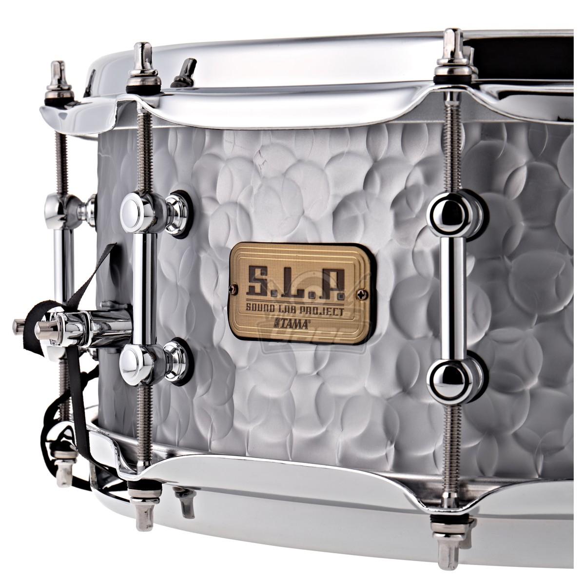 El Tama SLP Vintage Hammered Steel 14 x 5,5'' Snare Drum es un impresionante tambor martillado snare de Tama. Presenta un impresionante casco de acero martillado de 1,2 mm, que añade complejidad tonal, profundidad y sequedad a los sonidos generalmente brillantes y cortantes asociados a los cascos de acero de Tamas.Estos tonos complejos se generan a partir de las ondas sonoras que rebotan en la superficie irregular produciendo una complejidad tonal - ofreciendo un sonido único snare. Los aros de acero de este SLP snare mejoran el sonido general de snare, añadiendo tonalidad y sensibilidad extra a este snare. Ideal para una variedad de géneros musicales, este snare está garantizado para proporcionar una voz única a su sonido de la batería, mientras que la