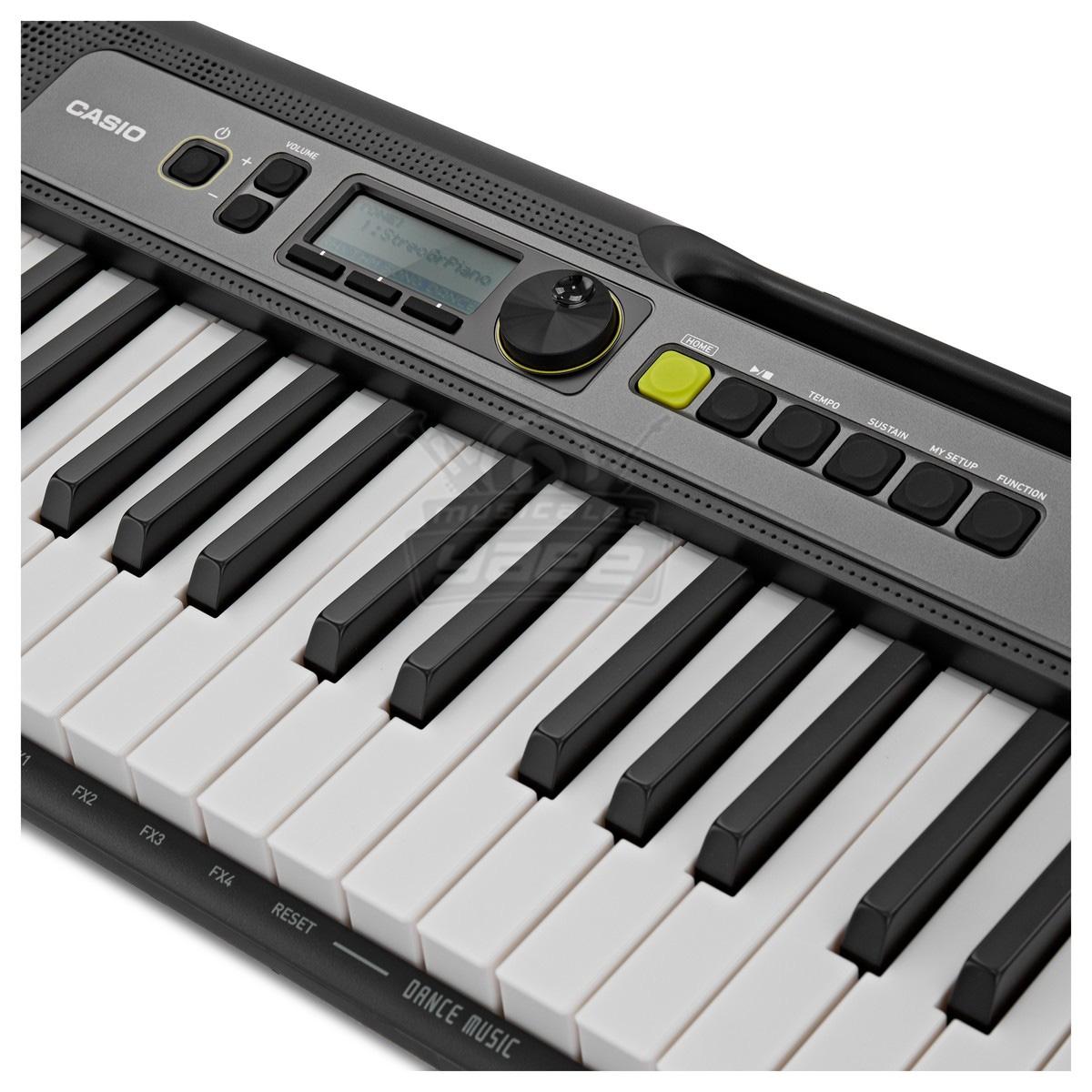 Con el LK-S250, puede disfrutar de la música en cualquier momento y lugar. Su tamaño compacto de 930 mm x 256 mm x 73 mm es un 30 % más pequeño en volumen que los modelos LK-265 y LK-266, y su batería alcalina cuenta con aproximadamente 16 horas de duración*. Llevarlo es muy sencillo, gracias a un mango en la parte superior del teclado y un peso de solo 3,3 kg. El diseño incorpora bordes y esquinas redondeados, lo cual permite transportarlo con seguridad.