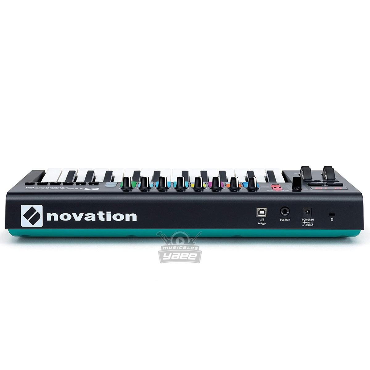 Novation Launchkey 25 MK2 Teclado MIDI es una versión del teclado controlador USB de 25 notas de Novation para Ableton Live, con pads RGB sensibles a la velocidad, 8 knobs, botones de navegación y control dedicados y software para Mac y PC, incluido Ableton Live Lite.