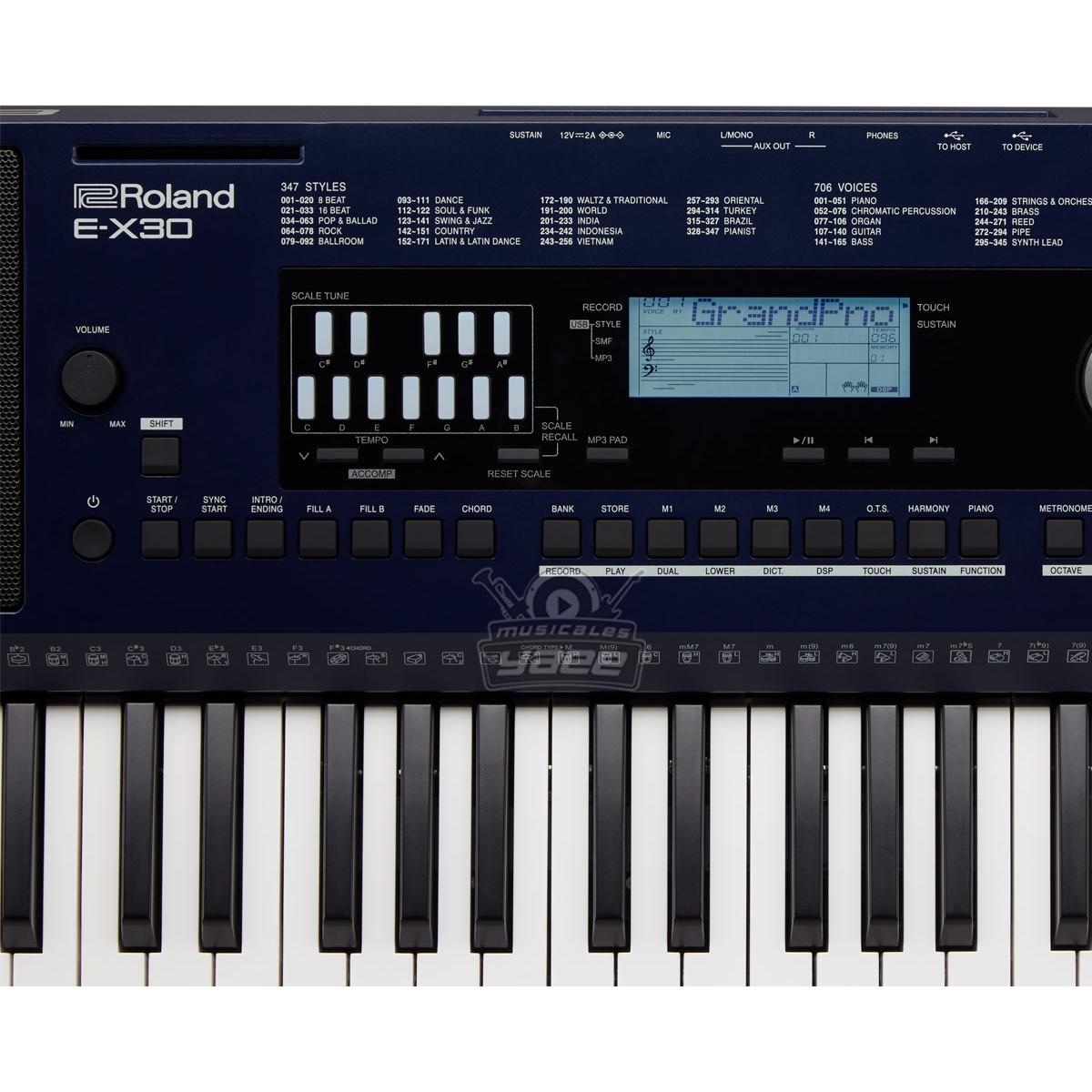 Cuando tienes la ambición por ser musico, aprender a interpretar el teclado es el primer paso ideal. Creado por Roland, la aclamada marca por profesionales alrededor del mundo por su solida confiabilidad, calidad y expresión, el E-X30 es el instrumento perfecto para cualquier joven esperanzado en poder llegar a ser un intérprete musical. Los sonidos de piano de alta calidad en el E-X30 están perfectamente adecuados para el desarrollo de las habilidades musicales, donde siempre se requieren los sonidos y matices tradicionales. Yendo más allá, este teclado ofrece también sonidos alternativos integrados a bordo, incluyendo una variedad de sonidos étnicos para la interpretación de estilos de música locales en cualquier parte del mundo. Incluso la práctica a solas es inspiradora con el E-X30 — el arreglista integrado y la reproducción de audio MP3 te permiten interpretar junto con el acompañamiento musical completo, preparándote para tu primera experiencia de interpretación con banda u orquesta.