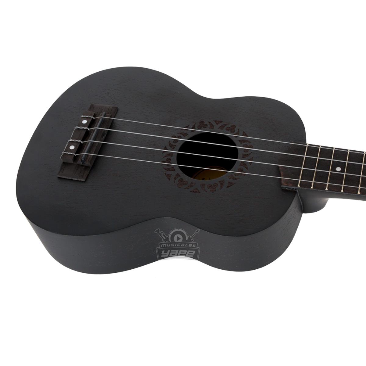 | Características premium: cuerdas Aquila black, tapa trasera arqueada, clavijas de color negro satinado, cejuela y selleta de color negro, roseta grabada a láser, marcadores de posición laterales. |