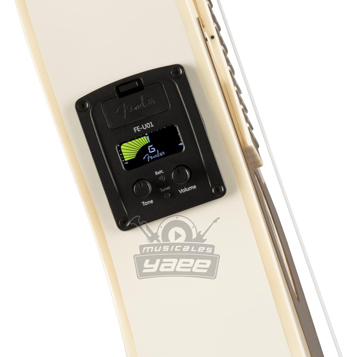 Los ukeleles de la serie Fullerton son un guiño a los cuerpos de guitarra de Fender, son nada menos que eléctricos. El Fullerton Jazzmaster parte de la construcción y la estética del ukelele tradicional, sin dejar de ser fiel a la historia de Fender. El golpeador del ukelele Jazzmaster, las opciones de color de acabado de la firma y el pala de 4 en línea solo pueden clasificarse como Fender por excelencia. El Fullerton Jazzmaster es la elección perfecta para el músico de ukelele que busca inyectar el espíritu del rock 'n roll en cada actuación.
