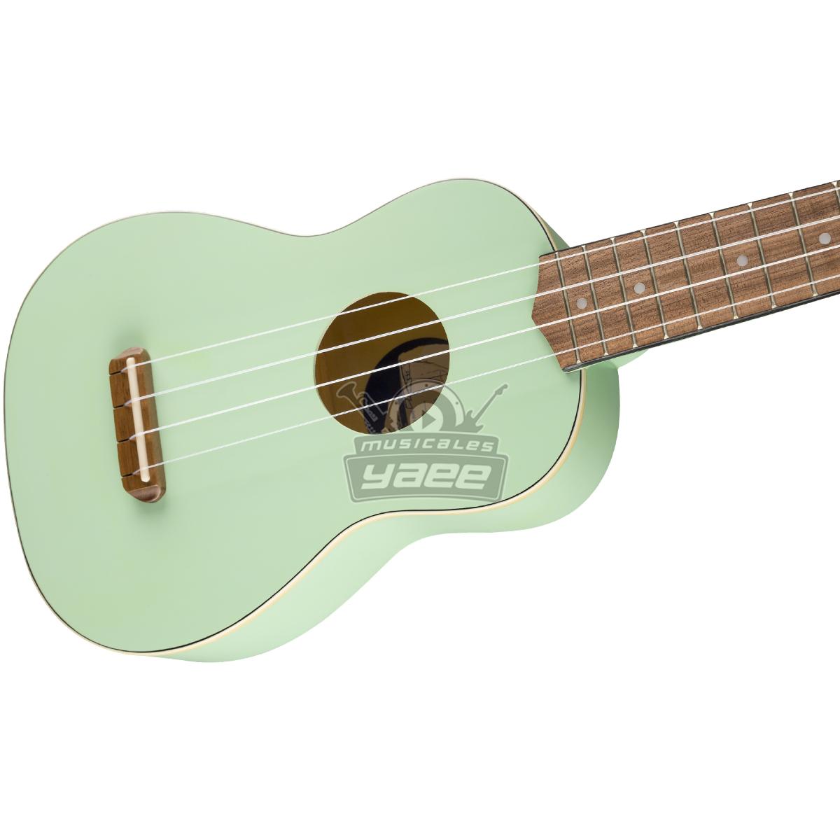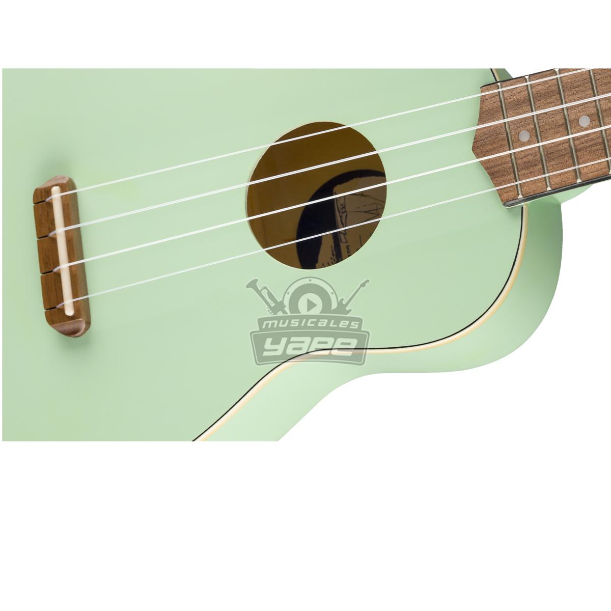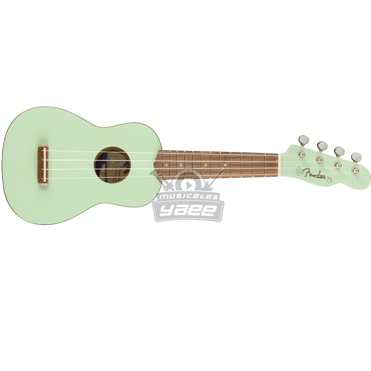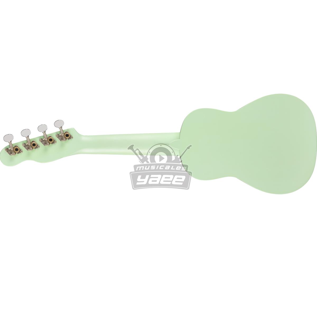 Inspirado en los fascinantes y despreocupados parajes de Venice, California, hemos creado un ukelele soprano que captura su vibración, el Venice Ukulele. Gracias a su tamaño compacto y cómodo, puede ir fácilmente de la playa al estudio oa una Jam, el sonido clásico y brillante que hizo al ukelele un "" indispensable "" para los músicos de hoy en día. El delgado perfil del mástil en forma de "" C "" es cómodo de sujetar y tocar, mientras que el diseño del puente hace que las cuerdas se cambien a santiamén. Una tapa ribeteada y una pala de Tele® con 4 clavijeros en línea agrega un toque único de estilo Fender que no se puede duplicar. Olvida tus preocupaciones, empápate de la música del paseo marítimo y vive la vida de playa todo el año con el ukelele de Venecia.