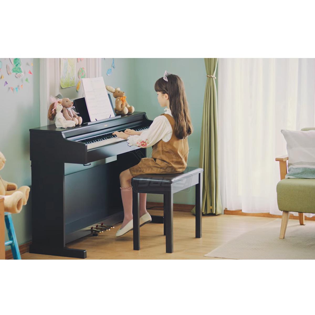 El teclado de 88 teclas con acción de macillo progresiva captura perfectamente la expresividad y el control de un piano de cola real, donde la acción se vuelve más ligera a medida que avanzas hacia las teclas agudas. Funciones modernas como Stereophonic Optimizer (optimizador estereofónico) e Intelligent Acoustic Control (control acústico inteligente) permiten un equilibrio y un sonido perfectos al tocar a todo volumen y al utilizar auriculares, mientras que la conexión a dispositivos externos te permite ampliar las funciones de tu piano, utilizando tus dispositivos inteligentes.